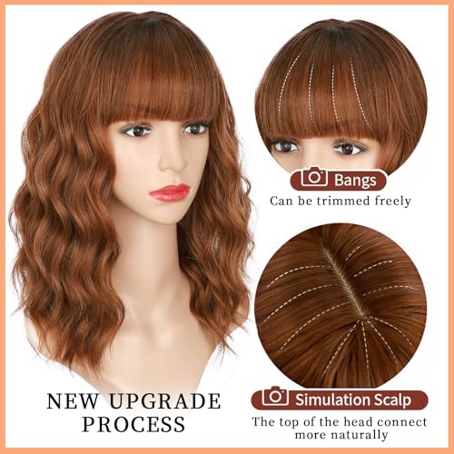 Lativ Short Bob Wavy Wig with Bangs Shoulder Length Bob Wig for Women