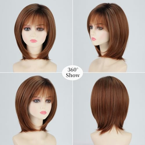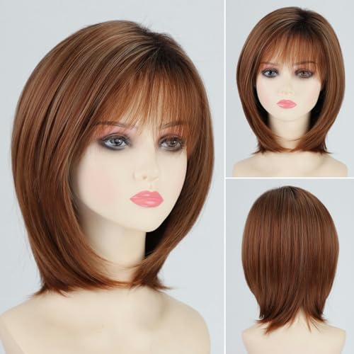 RENERSHOW chin length bob wig with bangs synthetic natural looking wig